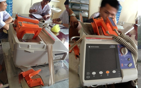 Một trong 2 chiếc máy sốc tim dùng để cấp cứu bệnh nhân nặng, trị giá hàng trăm triệu bị đập hỏng.