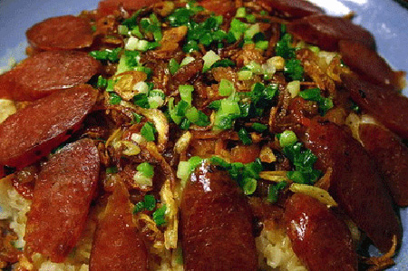 Chính vì thế, đối với người Chăm (theo Hồi giáo) thịt heo là thực phẩm cấm kị. Để thưởng thức món lạp xưởng, họ đã chế biến ra lạp xưởng bằng thịt bò - tung lò mò.