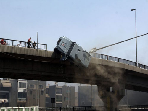 Default Người biểu tình Ai Cập hất xe bọc thép xuống cầu