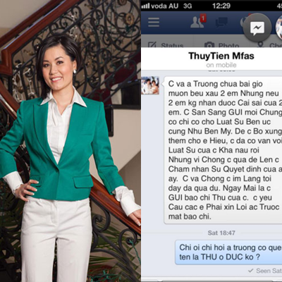 Nội dung tin nhắn của Thủy Tiên gửi cho Dung: “Chị và anh Trường không bao giờ muốn bêu xấu hai em. Nhưng nếu hai em không nhận được cái sai của hai em, chị sẵn sàng gửi mọi chứng cớ chị có cho luật sư bên Úc cũng như bên Mỹ. Để chị bổ sung cho em hiểu, chị đã cố vấn với luật sư của chị khá lâu rồi, nhưng vì chồng chị quá dễ nên chị chấp nhận quyết định của anh ấy.