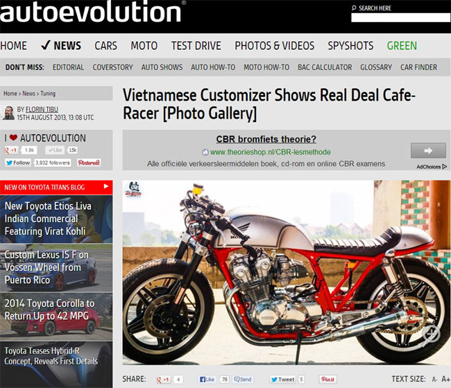 Autoevolution đưa tin về chiếc Honda độ tại Việt Nam.