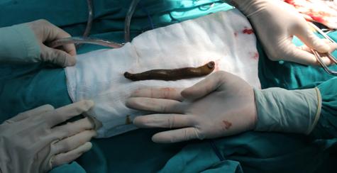 Con Đỉa dài gần 20cm được các bác sĩ lấy ra từ bàng quang của cháu Lâm