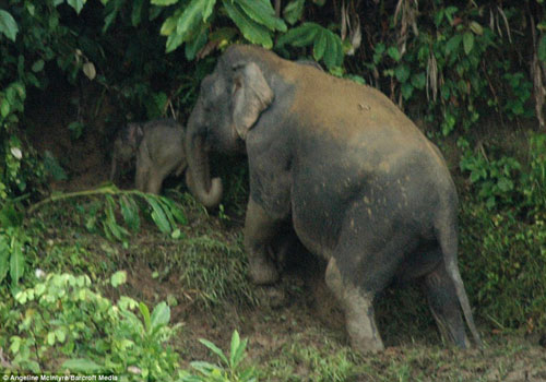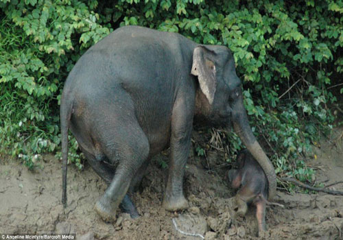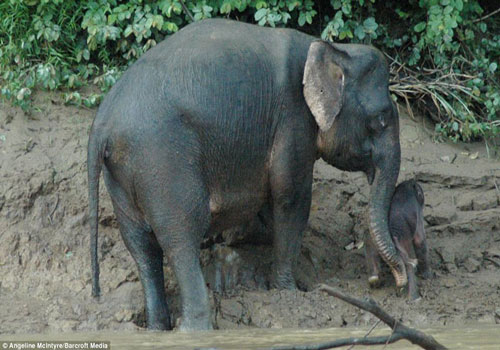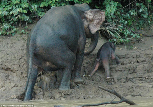 Một con voi con đã được cứu nhờ sự nỗ lực của mẹ nó sau khi bị mắc kẹt bùn lầy ven sông trong khu vực Sabah phía Bắc Borneo.