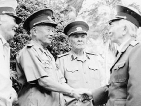 Thượng tướng Hoàng Cầm và Đại tướng Võ Nguyên Giáp (Ảnh tư liệu QĐND)