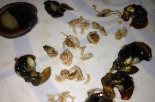 Video lập tức nhận được sự quan tâm của cộng đồng mạng với hàng trăm lượt chia sẽ và bình luận. Đoạn video miêu tả cảnh một người dùng kim tây để lấy ốc dừa ra khỏi vỏ và trong đó thì lúc nhúc những con vật nhỏ nhỏ được cho là sán?!