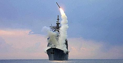Một tên lửa được bắn đi từ tàu chiến Mỹ - Ảnh: AFP