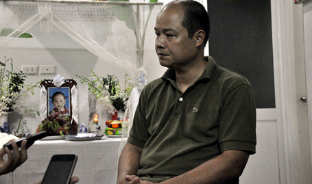 Nh́n lên di ảnh con, chốc chốc anh Bách lại khóc nấc. Mới đi lớp được 2 ngày, cháu Trần Nhật Hương (12 tháng tuổi), con gái anh Bách, đă qua đời một cách bất thường.