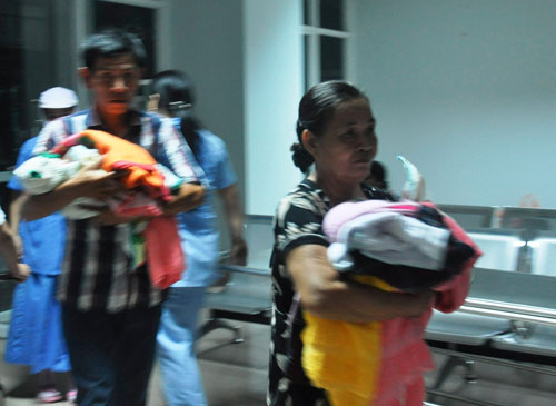 Người nhà và bệnh nhân tại khoa Sản, Bệnh viện đa khoa Quảng Nam hốt hoảng v́ tin báo cháy giả