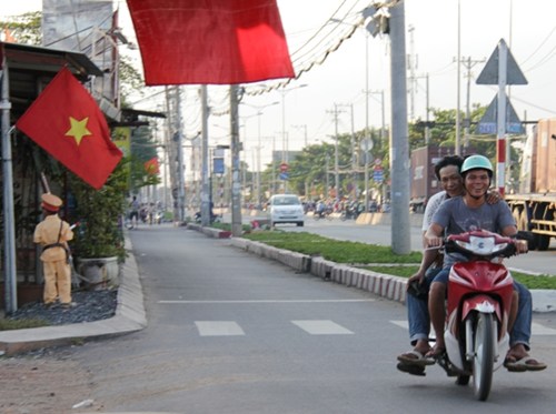 "May quá, CSGT quay mặt nơi khác chứ phát hiện bọn mình đèo 3 thì có mà...ăn biên bản".