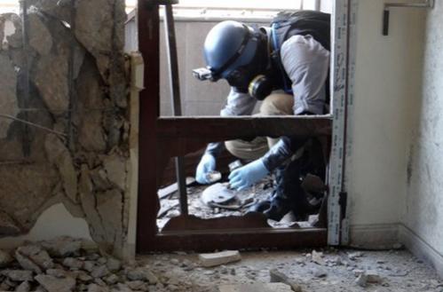 Thanh sát viên của Liên Hợp Quốc thu thập bằng chứng tại hiện trường để điều tra cáo buộc rằng chính phủ Syria sử dụng vũ khí hóa học trong cuộc tấn công ngày 21/8. Ảnh: AFP.