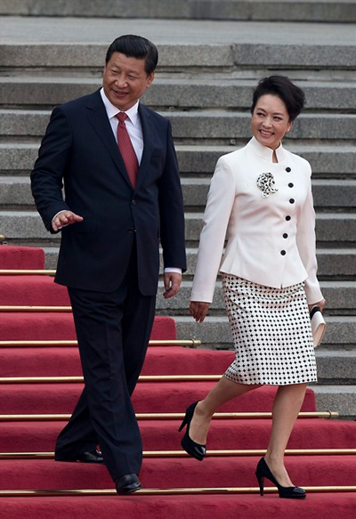 Phu nhân của ông Tập là nữ ca sĩ nổi tiếng Bành Lệ Viên. Không giống những đệ nhất phu nhân Trung Quốc tiền nhiệm, bà Bành rất nổi bật trước công chúng. Mỗi lần tháp tùng chồng công du, bà Bành luôn rạng rỡ, nổi bật với gu thời trang nhận được nhiều lời khen. Tuy nhiên, bàn tán về đời tư của giới lănh đạo cấp cao Bắc Kinh không được khuyến khích ở Trung Quốc.