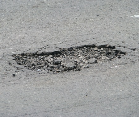 ...và vết bong tróc trên mặt đường chỉ mới hơn 1 năm sử dụng.