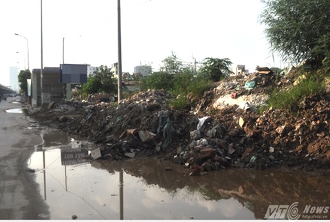 Các loại phế thải, nước đọng khiến tuyến đường này rất nhếch nhác, bụi bẩn