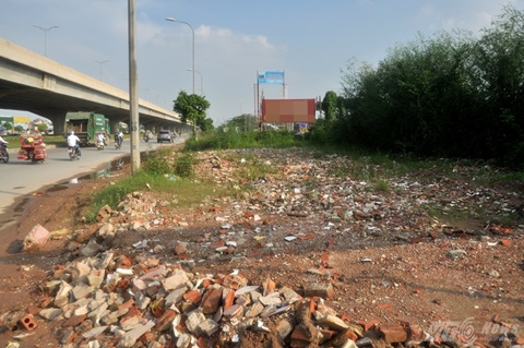 Theo ghi nhận của PV, dọc hai bên vỉa hè đường Nguyễn Xiển, từng đống phế thải xây dựng được đổ san sát nhau, chiếm hết cả vỉa hè, thậm chí một số điểm còn tràn ra cả lòng đường. Ngoài ra, nhiều bãi đất trống hai bên đường cũng trở thành điểm đổ phế thải xây dựng.