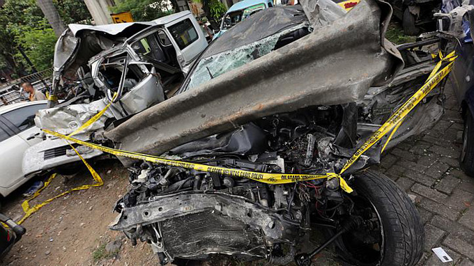Chiếc xe Mitsubishi Lancer bị hư hại nặng sau vụ tai nạn - Ảnh: Jakarta Post