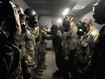 Syria là một trong số ít các quốc gia không kư Công ước cấm sử dụng vũ khí hóa học. Trong kho dự trữ của Syria có lưu trữ Sarin, khí Mustard, Tabun và VX. Trong ảnh là các binh sĩ của Syria. Ảnh: Business Insider |