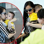Thái Hà một mình xuất hiện "bí ẩn" với bé trai tại sân bay