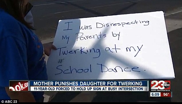 Jamie Hena đã bị bố mẹ phạt đứng đường ôm theo một tấm bảng với nội dung: “Tôi đã không tôn trọng cha mẹ khi lắc mông tại vũ trường”Bà Frances Hena (California) bắt cô con gái 11 tuổi của mình phải đứng giữa phố 2 tiếng đồng hồ cùng tấm bảng trên chỉ vì cô bé đã bắt chước điệu nhảy khêu gợi của Miley Cyrus tại đêm trao giải MTV VMAs. Nữ ca sĩ mặc bikini màu da mát mẻ và nhảy cực sexy trong tiết mục song ca cùng Robin Thicke, đặc biệt là các động tác lắc mông và ngực.Mẹ Jamie phát hiện ra con gái thực hiện những động tác khiêu dâm này tại vũ trường cùng một người bạn. Bà đã rất tức giận khi nhà trường đã không nói cho con gái bà, một nữ sinh 11 tuổi biết được mức độ quan trọng của việc này.