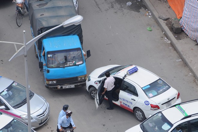 Ngay sau đó, hai bên lao vào xô xát. Đầu tiên tài xế xe tải đạp gãy kiếng chiếu hậu bên phải của xe taxi, sau đó lao vào đánh tài xế taxi.