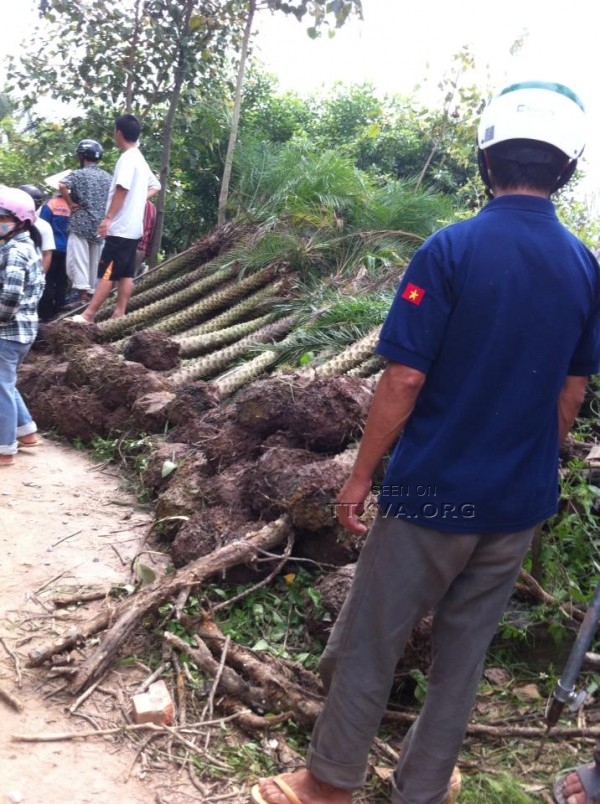 Theo mô tả của người dân tại chỗ, chính quyền xă mượn cớ đào mương ng̣i, đă để xe ủi, máy xúc vào khu vực này phá hoại cây trồng, hàng chục côn đồ cũng có mặt để đe dọa gây hấn.