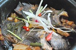 Bước 6: Nêm nếm gia vị: nước mắm, gừng, ớt, chay khô và nước hàng để 30 phút cho cá ngấm gia vị.