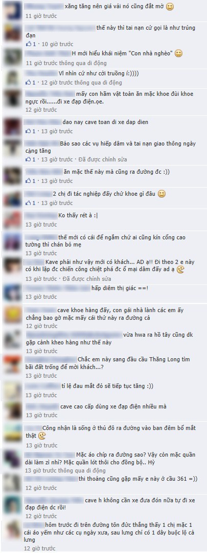 Bức ảnh nhanh chóng lan truyền với tốc độ chóng mặt và nhận được rất nhiều "gạch đá". Đa số các bạn cho rằng ăn mặc như vậy là không hợp với thuần phong mỹ tục và quá lố lăng. Chưa kể việc ăn mặc khiêu gợi như vậy rất dễ làm con mồi cho các "yêu râu xanh".