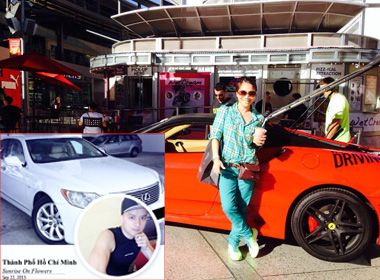 Bức ảnh Hồng Ngọc "chụp ké" cùng siêu xe kèm theo status đầy ẩn ý: "Xe đẹp...Có người tặng mà mình không lấy này...... Đu dây điện tí nào...Trời ơi.. Tui đang tưởng tượng.. Hí hí".