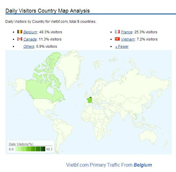 Hiện tại Âu châu là vùng vào server của VBF nhiều nhất, xem map dưới đây sẽ biết nước nào vào nhiều và ít.