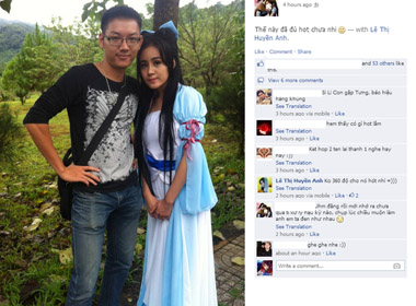 Trong hình, Bà Tưng mặc một bộ trang phục Cosplay, với một tạo hình rất tương tự như phong cách “kiếm hiệp tình duyên” của Tân Tiên Kiếm. Chính Facebook chính thức với hơn 500.000 follower của Lê Thị Huyền Anh cũng like và comment trong bức hình này. Cùng ngày, chủ nhân của bức hình cũng có một phát ngôn khác: