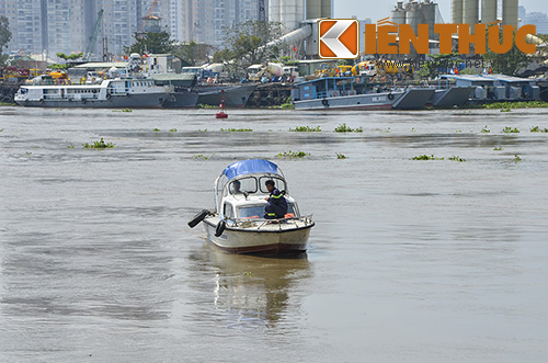 Do dòng nước dưới sông Sài Gòn chảy siết nên công tác tìm kiếm nạn nhân gặp nhiều khó khăn.