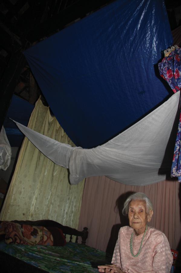 Nhà bà Phạm Thị Huệ, trên mỗi giường ngủ có thêm tấm bạt để chống dột