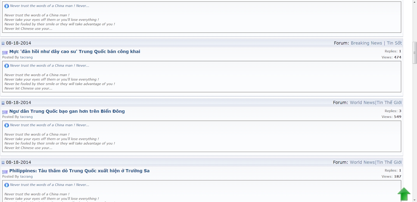 Bạn nói đúng ,Theo tui thấy trong diễn đàng này nếu nói chống Trung Cộng thi bị (Banned nick ) chỉ vì lập đi lập lại trong Comment thi bi Banned nick !?. những người chửi tục thì không hề bị Banned