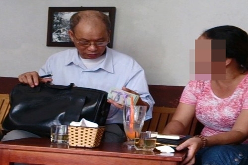 “Thầy” Huệ đang nhận tiền của một "con nhang".