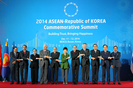 Các nhà Lãnh đạo ASEAN đặc biệt đánh giá cao sự hợp tác tích cực và hỗ trợ quan trọng của Hàn Quốc dành cho ASEAN trong xây dựng Cộng đồng ASEAN, tăng cường kết nối, thu hẹp khoảng cách phát triển, cũng như trong ứng phó với các thách thức chung ở khu vực. Tổng thống Hàn Quốc Park Geun-hye đánh giá cao sự hợp tác giữa hai bên trong 25 năm qua cũng như vai trò của ASEAN như một tổ chức khu vực năng động; nhấn mạnh ASEAN là ưu tiên cao trong chính sách đối ngoại của Hàn Quốc; khẳng định tiếp tục ủng hộ ASEAN xây dựng Cộng đồng cũng như thực hiện tầm nhìn sau 2015 mà ASEAN đang xây dựng; tiếp tục ủng hộ vai trò trung tâm của ASEAN trong cấu trúc khu vực đang định hình; ủng hộ thúc đẩy các chuẩn mực và giá trị chung của ASEAN trong khu vực Đông Á.
