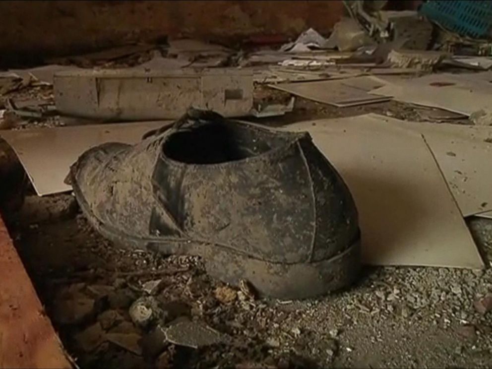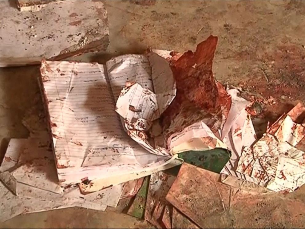 Những quyển vở học, quần áo và giày học sinh vẫn vương vãi trên hiện trường.