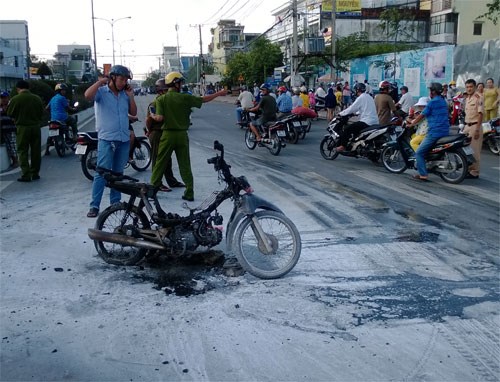 Khi lực lượng chức năng có mặt thì chiếc xe chỉ còn lại khung sắt. Chiếc xe máy bị đốt cháy có biển số 69F3-4365.