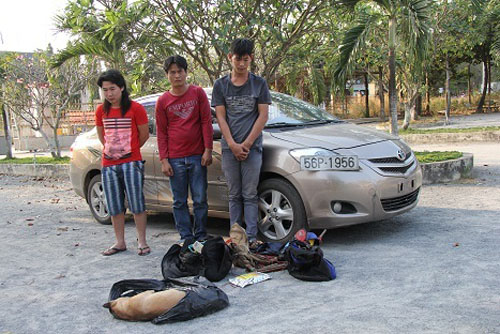 Các đối tượng lái ô tô đi trộm chó bị CA và người dân phường Tân Hiệp phát hiện ngày 21-1 Ảnh: C.KHANH
