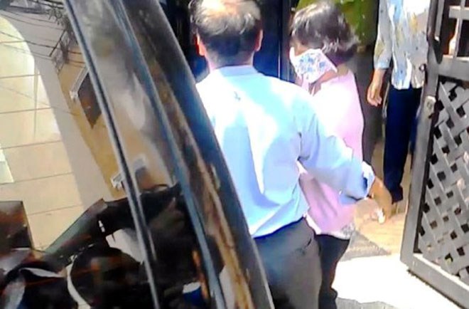 Bà Lê Nguyễn Thị Ái Trâm (che khẩu trang) bị bắt tại nhà riêng trên đường Trường Chinh, P.14, Q.Tân Bình.