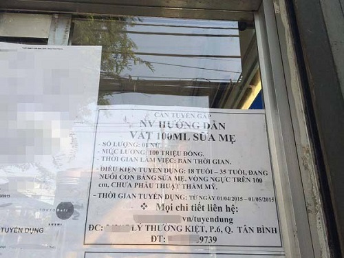 Thông tin này ngay lập tức thu hút sự chú ý của dư luận. Công việc đơn giản “Nhân viên hướng dẫn vắt 100ml sữa mẹ”, lương 100 triệu.