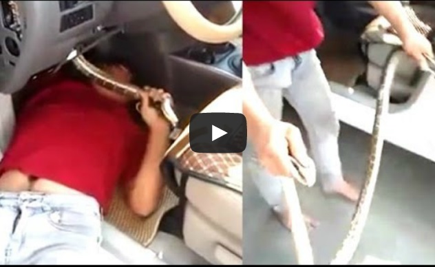 Đang lái xe, tài xế bất ngờ phát hiện sinh vật lạ ngay dưới vô lăng. Hoảng loạn, tài xế liền gọi người trợ giúp. Ít phút sau, các nhân viên đã bắt sống đc một con trăn nặng 2kg trốn trong chiếc xe.