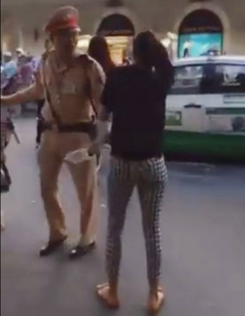 Lực lượng CSGT phải chạy lại can ngăn. Ảnh cắt từ clip