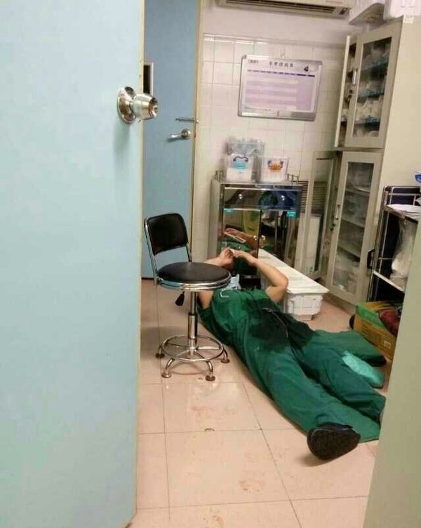 Vừa qua, cộng đồng mạng Trung Quốc không ngừng chia sẻ những hình ảnh về một bác sĩ do làm việc quá sức đã nằm ngay trong phòng phẫu thuật để nghỉ ngơi.