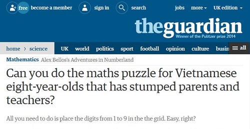 Biên tập viên khoa học Alex Bellos, người đăng tải bài viết này, cho rằng hãy quên Singapore mà hướng sự chú ý sang Việt Nam, nơi sản sinh ra những câu đố toán học cực kỳ hóc búa hiện nay.