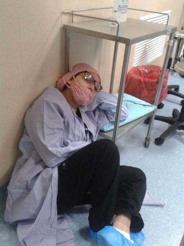 Chúng ta thường thấy bác sĩ là nghề địa vị cao trong xã hội, đi kèm với đó là mức thu nhập đáng mơ ước. Thế nhưng nhìn vào đó mà nói ngành y là thiên đường thì không hẳn. Những hình ảnh sau đây chỉ là một mảng về sự khổ cực của ngành y. Ý tôi đây mới chỉ là vấn đề thời gian làm việc, tạm thời chưa nói về áp lực trong vấn đề chuyên môn.