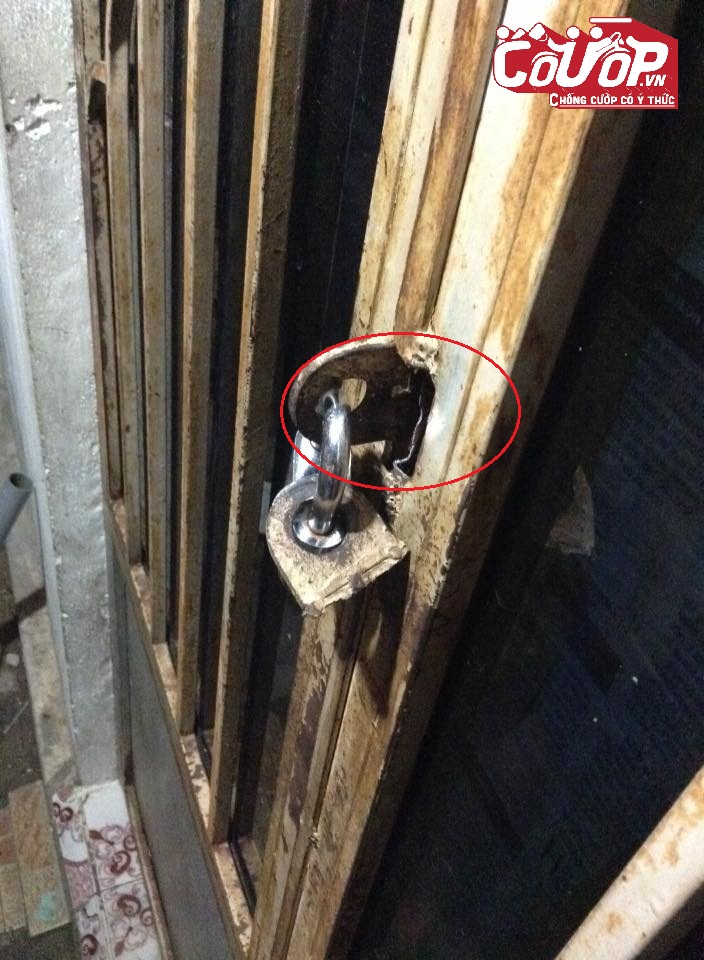 Một vụ trộm khác với cùng thủ đọan làm gãy khoen khóa cửa