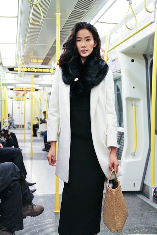 Hoàng Thùy còn mang cả làn đi chợ "chu du" Tuần lễ thời trang London.