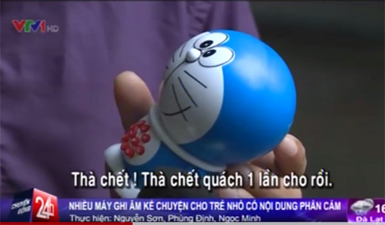 Chú mèo máy Doremon từ lâu đã trở nên rất quen thuộc với thiếu nhi Việt Nam qua những cuốn truyện tranh lý thú và bổ ích. Thế nhưng khi chú mèo máy này xuất hiện trên phố Lương Văn Can (Hà Nội) với hình dạng của một món đồ chơi thông minh, có thể đọc và kể truyện thì những câu chuyện phát ra từ chú mèo máy lại có những nội dung vô cùng phản cảm, khiến nhiều người giật mình.