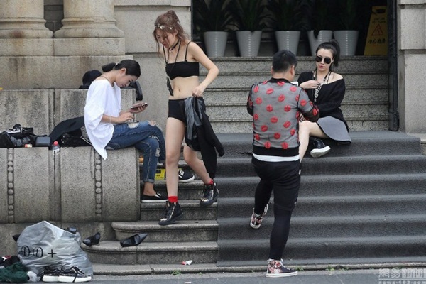 Với việc phải thay hàng trăm bộ trang phục để chụp hình, các người mẫu cho một cửa hàng quần áo ở Trung Quốc đã quyết định tiết kiệm thời gian và đã thay đồ ngay tại chỗ.