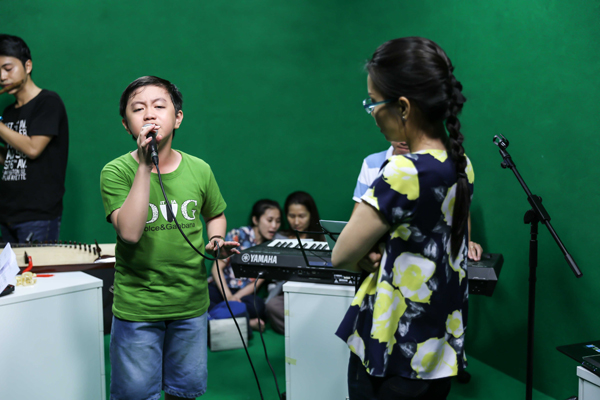 Cô giáo sửa từng câu hát và đưa ra những góp ý để giúp phần thể hiện ca khúc mang âm hưởng dân ca của 'tiểu tài tử' trở nên có hồn hơn.