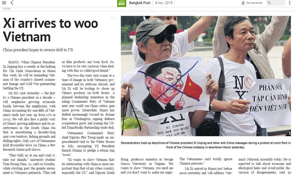 Một trong những tờ báo lớn của Thái Lan, Bangkok Post, đã đăng bài và hình ảnh về cuộc biểu tình chống tập cận Bình diễn ra ở Hà Nội